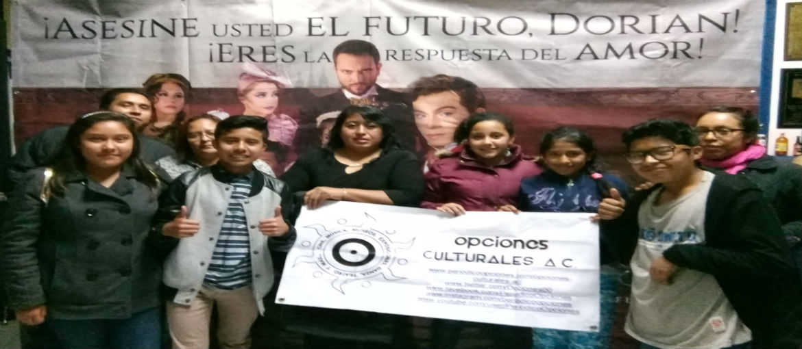 La noche del 06 de noviembre, Opciones Culturales A.C. llevó a aproximadamente 20 personas de la colonia Progreso Tizapán de la alcaldía Álvaro Obregón, Francisco Villa de Iztapalapa y familias provenientes del Estado de México y Morelos, a disfrutar de forma gratuita de la puesta en escena “Dorian Gray, El Musical” que se presentará todos los martes a las 8:30 p.m. en el Teatro Wilberto Cantón de la Ciudad de México. Bajo la producción de Mauricio Roldán y la dirección de Lupita Sandoval, la obra cuenta la historia de Basil Hallward, quien, fascinado por la belleza de Dorian Gray, pinta su retrato sin imaginarse el infierno que se avecina a partir de su develación, pues despiertan en Dorian Gray, toda clase de pasiones, desde las más exquisitas hasta la degradación total.